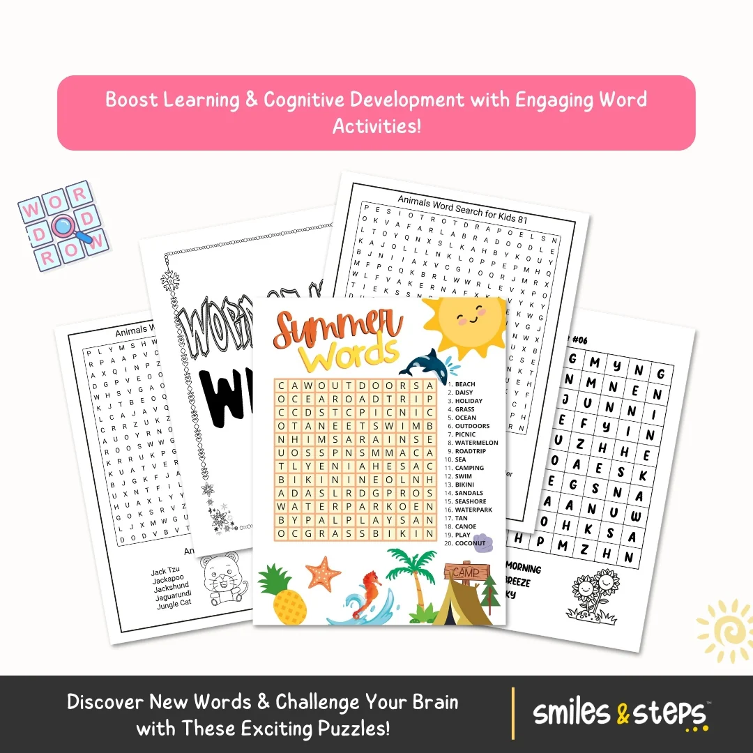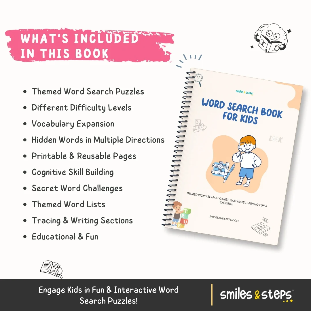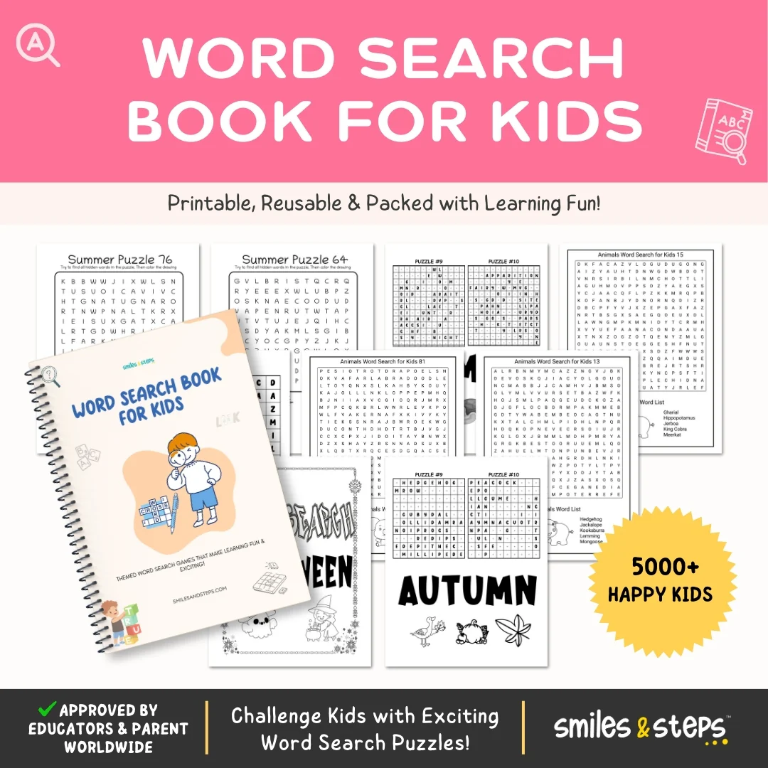 - ✅ Themed Word Search Puzzles: Fun topics like animals, seasons, unicorns, and more!
